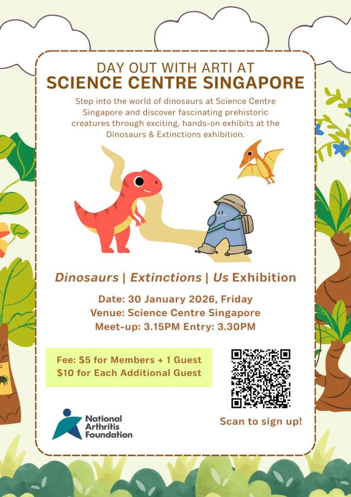 Join Arti for a fun and meaningful day out at Science Centre Singapore as we explore the Dinosaurs | Extinctions | Us exhibition together. Members and their guests can look forward to discovering life-sized dinosaurs, interactive exhibits, and engaging displays that bring the prehistoric world to life, making this an enjoyable and educational experience for both adults and children.